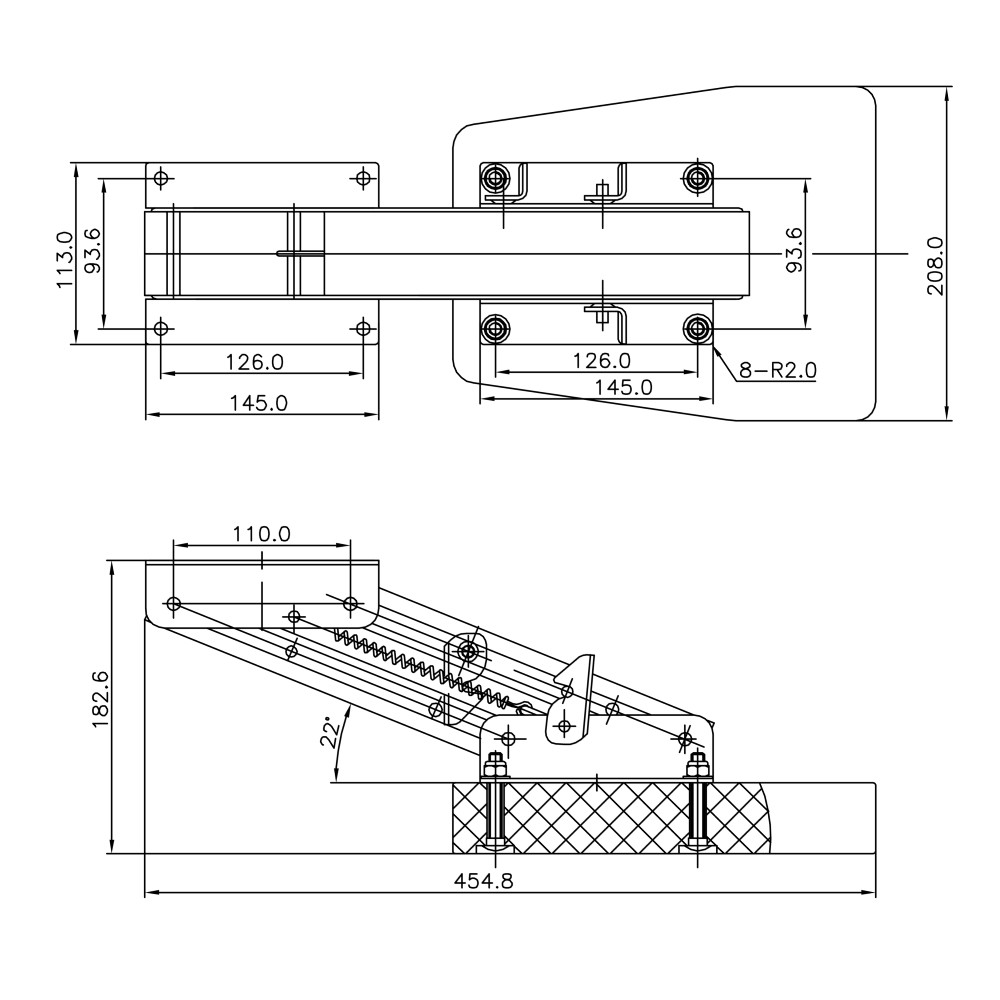 Stainless steel 316 outboard motor bracket with 2 positions return spring.