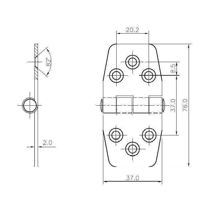 Stainless steel hinges. Thickness 2 mm reversed pin.