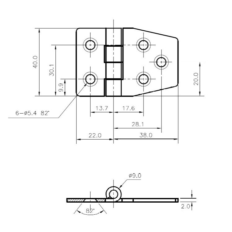 Stainless steel hinges. Thickness 2 mm reversed pin