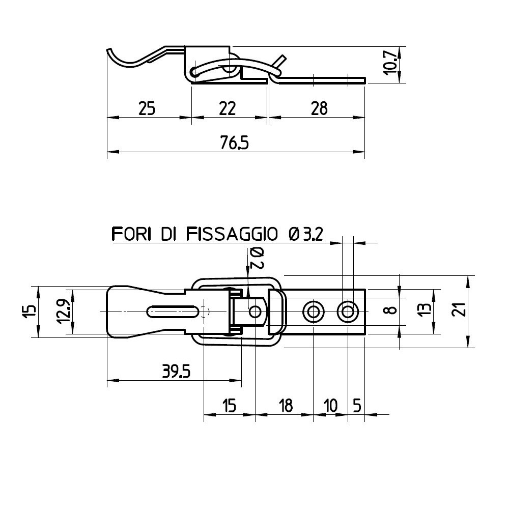 Stainless steel toggle lateh length 76,5 mm.
