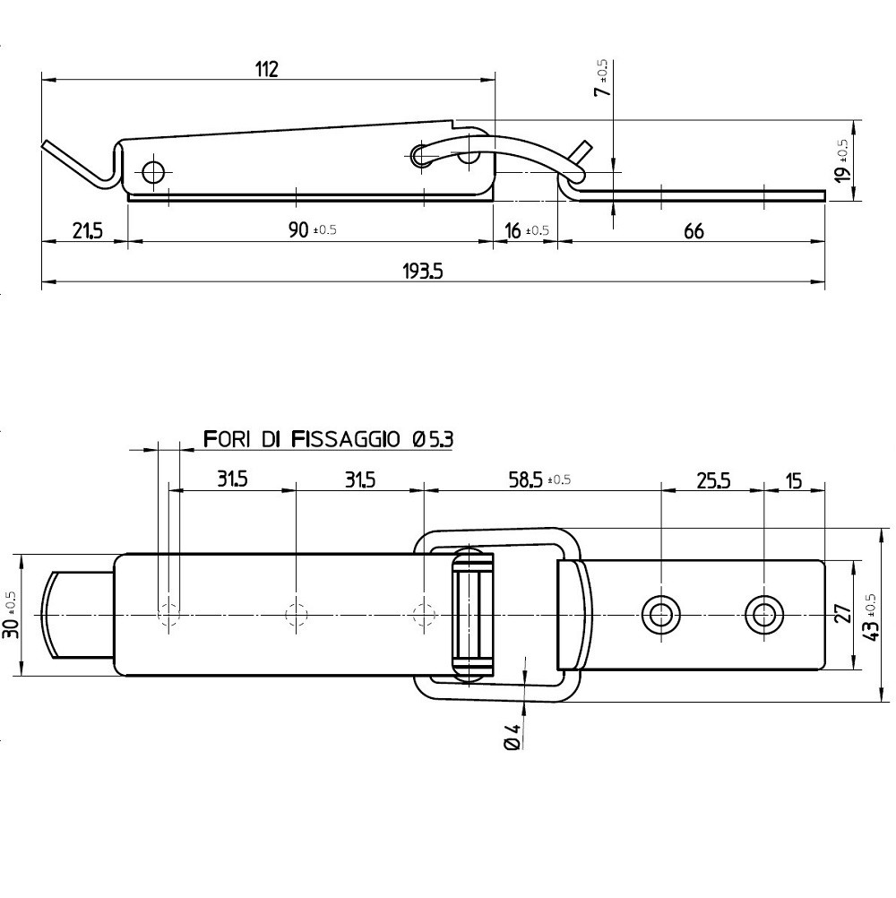 Stainless steel toggle lateh length 193,5×30.
