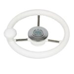 Steering wheel in stainless steel with white polyurethane handgrip with handle Ø 280 mm.