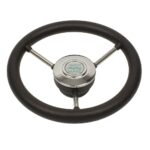 Steering wheel in stainless steel with black polyurethane handgrip Ø 280 mm.