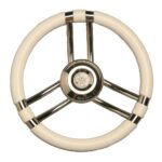 Steering wheel in stainless steel with white polyurethane handgrip Ø 350 mm.