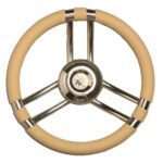 Steering wheel in stainless steel with cream polyurethane handgrip Ø 350 mm.