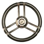 Steering wheel in stainless steel with cubic type handgrip Ø 350 mm.