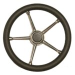 Steering wheel in stainless steel with black polyurethane handgrip Ø 350 mm.