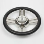 Wheel in stainless steel with black polyurethane handgrip Ø 350 mm.