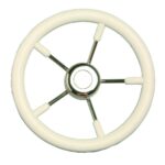 Wheel in stainless steel with polyurethane grip, colour white.
