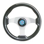 Steering wheel with carbon-fiber handgrip, alluminium spokes Ø 350 mm.