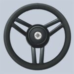 Steering wheel in stainless steel with lather handgrip Ø 350 mm.
