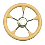 Steering wheel in stainless steel with polyurethane grip, colour cream, Ø 350 mm.