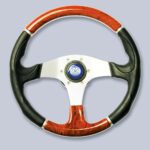 Steering wheel in black polyurethane handgrip and briar inserts Ø 350 mm.
