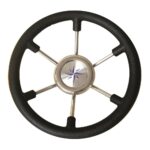 Steering wheel with black hard plastic.