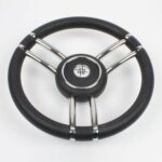 Steering wheel in stainless steel with black colour polyurethane handgrip Ø 350 mm.