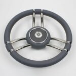 Steering wheel in stainless steel with grey colour polyurethane handgrip Ø 350 mm.