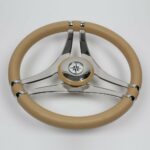 Steering wheel in stainless steel with ivory colour polyurethane handgrip Ø 350 mm.