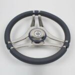 Steering wheel in stainless steel with grey colour polyurethane handgrip Ø 350 mm.