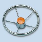 Steering wheel in stainless steel with oval handgrip.