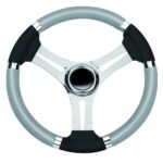 Steering wheel in stainless steel with polyurethane grip, colour black/grey, Ø 350 mm.