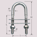 Cavallotti ad U con 2 piastrine e 2 dadi in acciaio inox 316.
