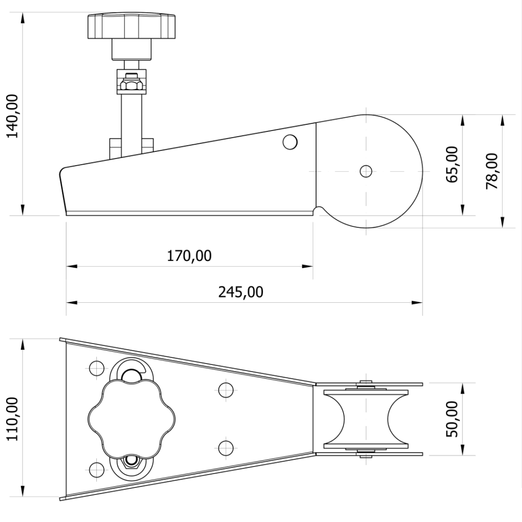 Musone di prua in acciaio inox lucidato con blocco ancora.
