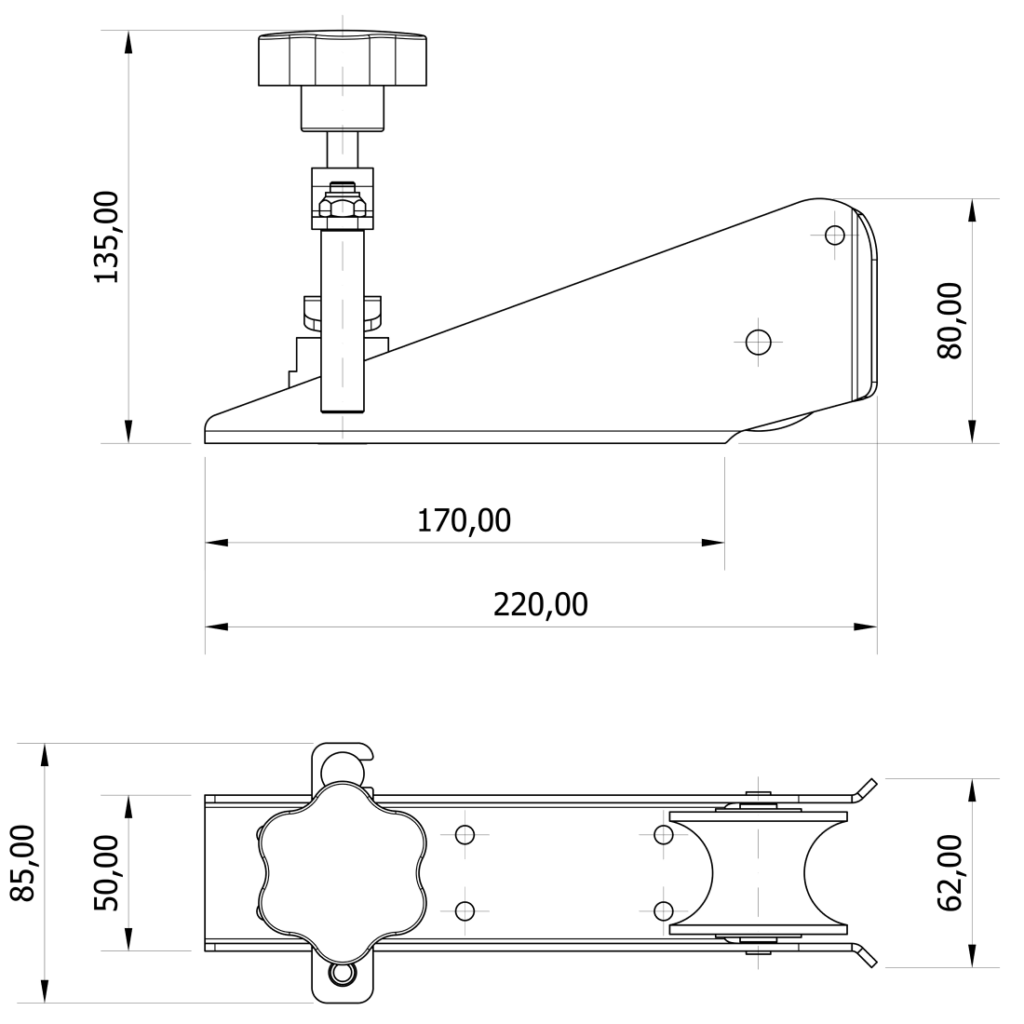 Musone di prua in acciaio inox con blocco ancora modello diritto.