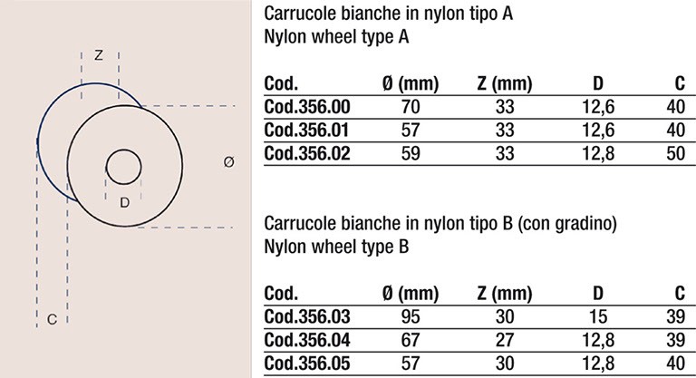 Carrucole bianche in nylon.