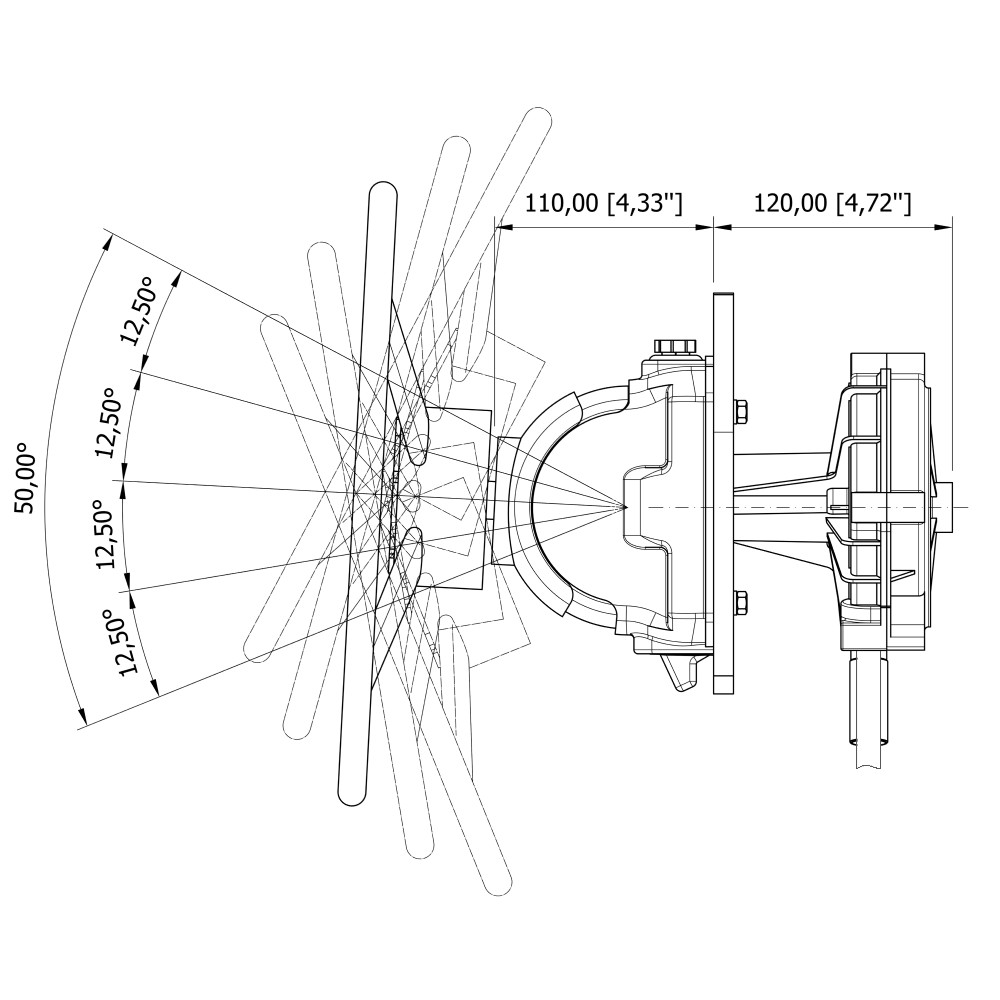 Angolo totale di regolazione di 50° su cinque posizioni differenti