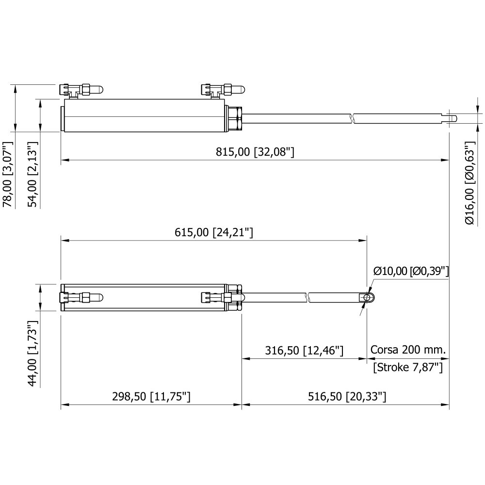 Corsa 200 mm.