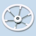 Volante a 6 razze con impugnatura in poliuretano colore bianco.