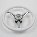 Volante in acciaio inox con impugnatura poliuretano bianco.